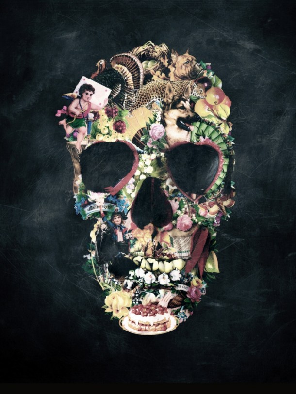 Sus trabajos y diseños están marcados por el surrealismo y sus collages integran diferentes elementos aunque las calaveras están presentes en muchas de sus obras. Os dejamos una muestra de su trabajo.
